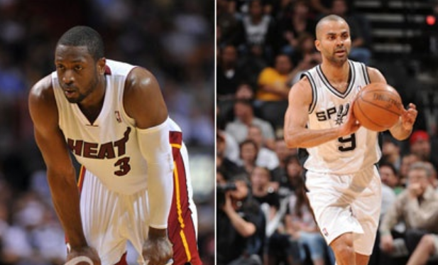 再来看看二当家韦德,14年时韦德已经出现了明显的下滑了,常规赛场均只有19+4+4的数据进账,是菜鸟赛季之后的新低。总决赛对位帕克+妖刀的后场组合,韦德也没有呈现优势,他交出了场均15.2分3.8篮板2.6助攻的数据,投篮命中率仅为43.8%,对比常规赛数据可以说是全面下滑。相比之下,帕克场均可以拿到18分4.6篮板的数据,吉诺比利也有场均14.4分3篮板4.4助攻的数据进账。随便一个对比韦德都不虚,更别说双枪了。
