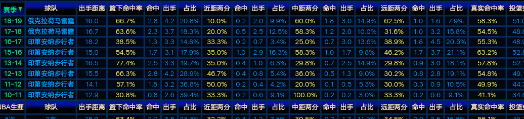 那一年的季后赛,乔治在比赛中场均可以贡献28.0分8.8个篮板和7.3次助攻。 三项数据都是球队的前两名,这样又当爹又当妈的乔治我们应该给予尊重。但是我们看看其他队友的表现,说实话从平均水平来看并不差,除了乔治之外有4个人的场均得分超过10分,甚至比骑士队还多出一人,但是为什么无法取得胜利呢?就是在于得分的爆发力,这一点是通过数据无法展现的。
