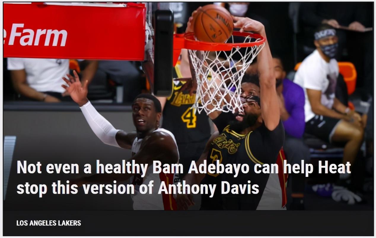 体育新闻Sports News网站的标题文章就是:即便是一个健康的阿德巴约也没有办法帮助热火阻挡现在的AD。