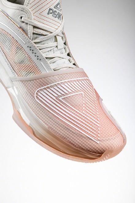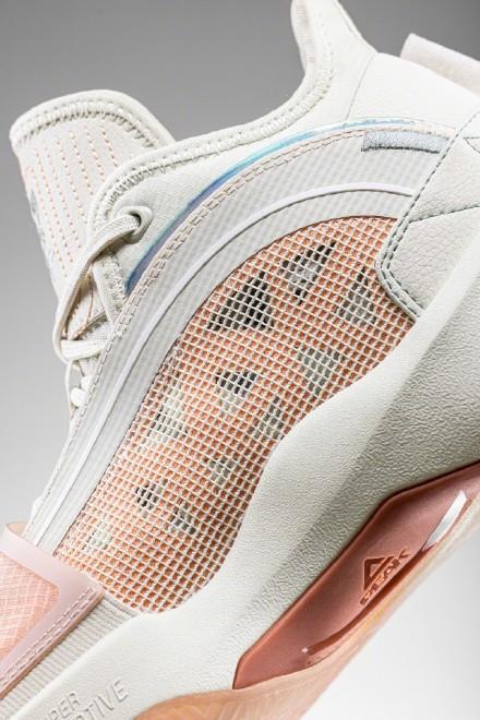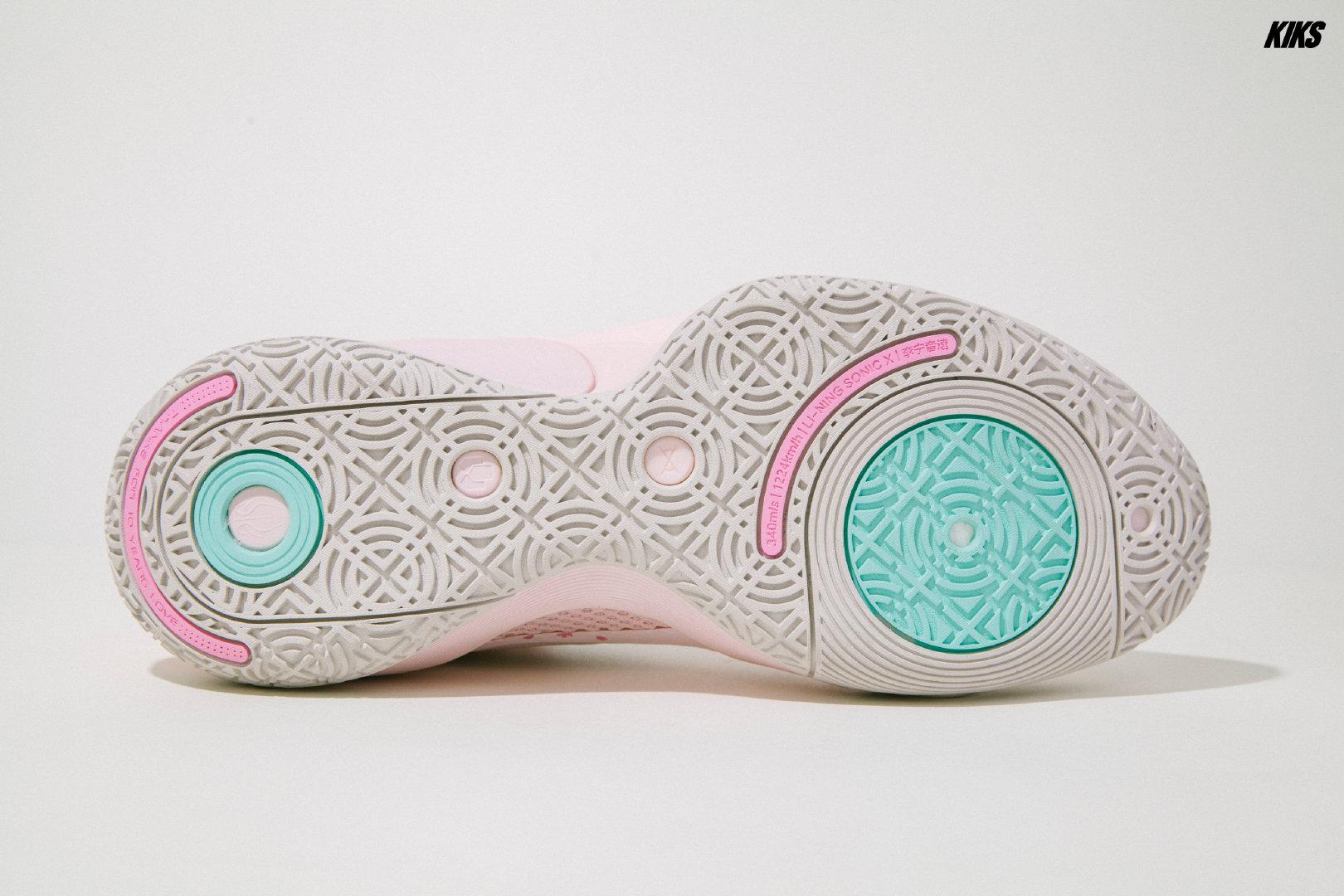 音速10代有种李宁几年前篮球鞋的感觉,看着感觉就很轻质,鞋型也挺犀利的,外底的设计有很多致敬的元素,中底应该是前掌䨻,全掌LF科技,范乔丹上脚的这个配色叫“绽放”,细节很多,对于他来说,一个从发展联盟打到拿下总冠军,并且进入全明星的球员来说,真的再适合不过了。