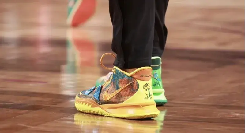 东道主加兰玩得挺开心的,他穿的是 Nike Kyrie 7 这双鞋,鸳鸯配色,细节超级丰富,他是主场作战,有一些优势,队友也给过机会,不过还是被掩盖了,今年的骑士队非常可以,期待后续的表现吧。