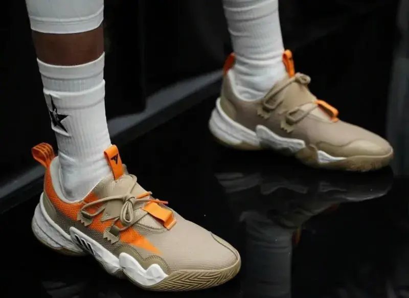 看完国产品牌的代言人,我们再看看国际品牌的,耐克仍旧球员穿着最多的品牌,然后阿迪这边,本来应该会有三位球员登场的,最后只剩下特雷杨一人了,哈登和米切尔都没亮相,好在登哥的鞋子亮相了,也算是做了宣传吧。