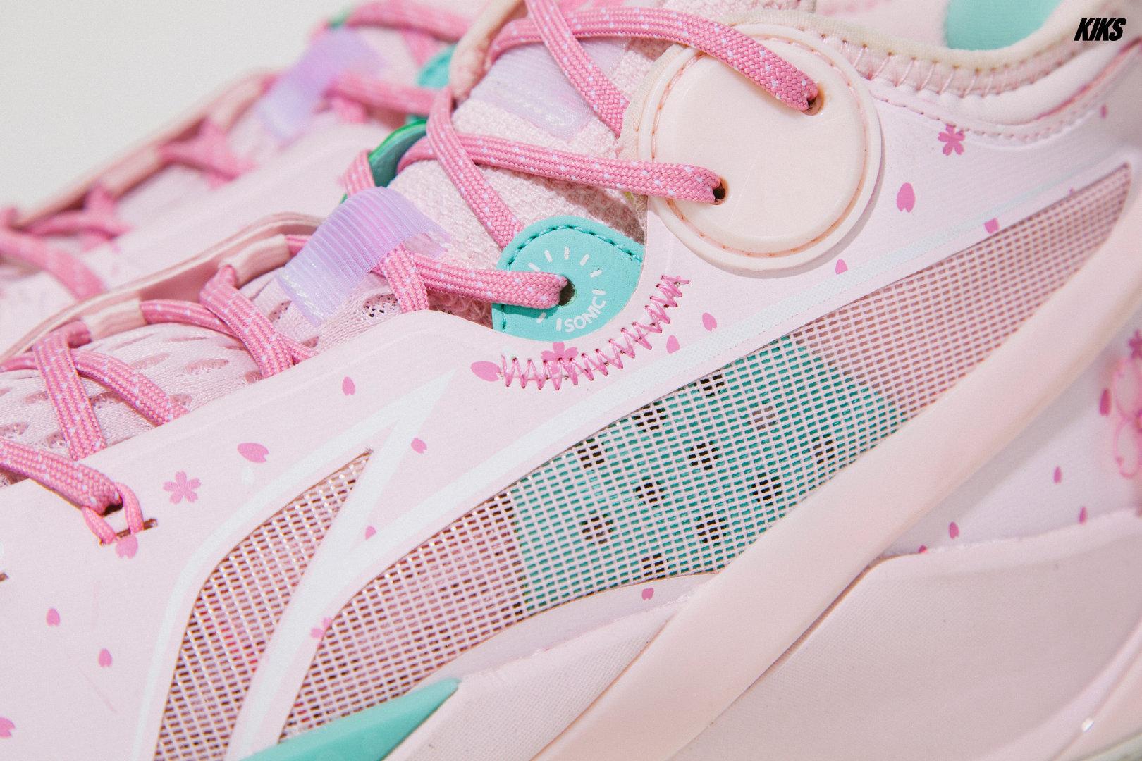 范乔丹上脚的是一双新鞋,其实也不新了,在全明星第二天他就曝光了这双鞋,他就是音速10代,一个里程碑式的产品,樱花色的涂装,加入了一些蒂芙尼蓝的点缀,设计上,第一眼的感觉略微普通了一些,但等高清图曝光后,看到鞋子的各种细节,狗哥觉得还是挺不错的。