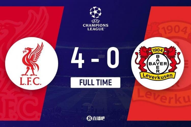 不久后比赛结束,最终,利物浦主场4-0大胜勒沃库森,取得欧冠四连胜,在联赛阶段积分榜上独占头名。