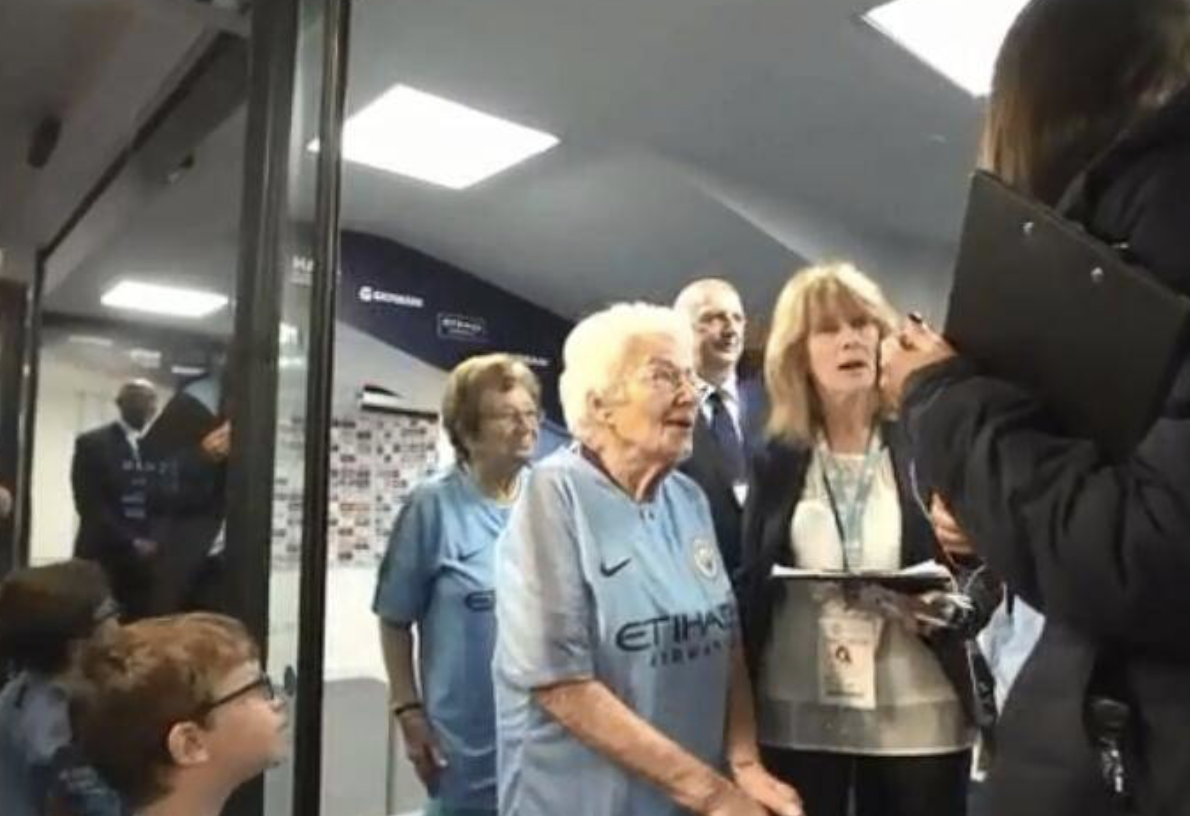 现年102岁的维拉-科恩和98岁的奥尔加-海伦已经是八十几年的曼城球迷,上赛季她们在曼城球员的带领下来到现场观战。