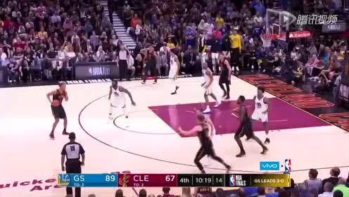 比赛最后时刻,库里运球倒地,詹姆斯也倒地扑球造成了一次争球。詹姆斯跳得球权,并在随后回合以一记急停中投杀死比赛。