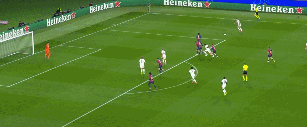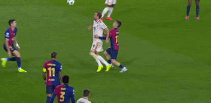 第1分钟,基米希解围失误,拉菲尼亚单刀冷静破门闪击,巴萨1-0!