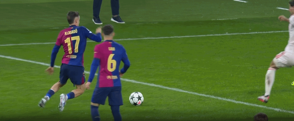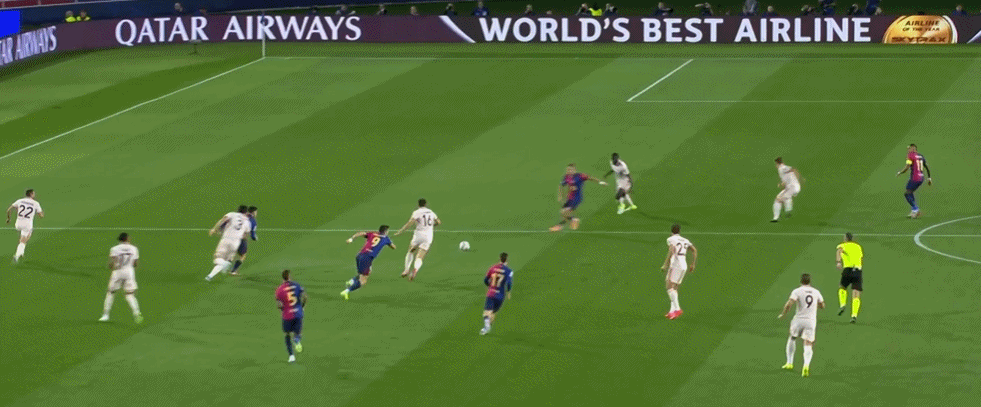 第23分钟,亚马尔1v2精彩摆脱抹过两人防守