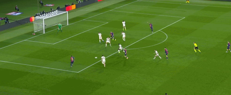 第83分钟,亚马尔右路传中,莱万门前没能完成打门