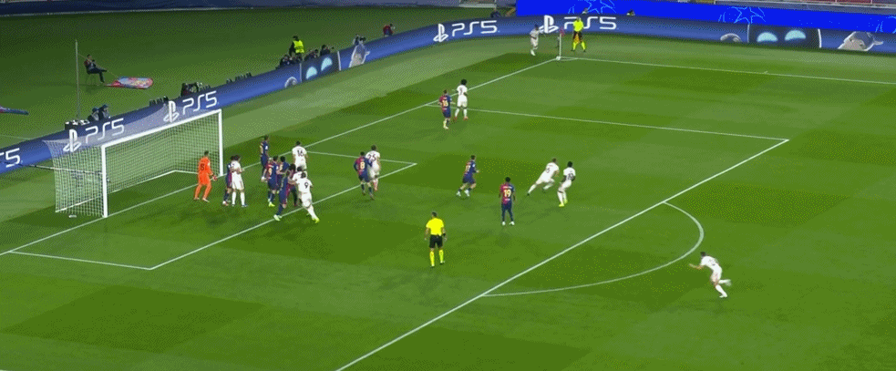 第56分钟,基米希发出左侧定位球,皮球被头球解围