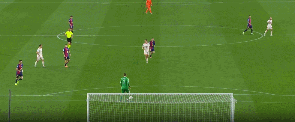 第36分钟,金玟哉冒顶,费尔明轻巧挑传助攻莱万破门,巴萨2-1!