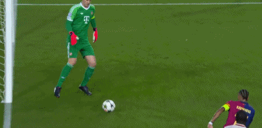 第50分钟,诺伊尔传球失误,拉菲尼亚横传被破坏
