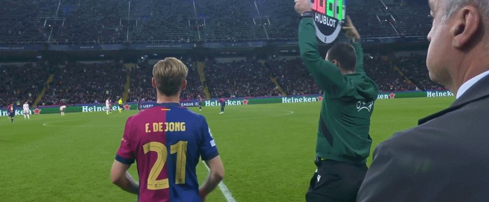 第61分钟,费尔明-洛佩斯被换下,弗朗基-德容替补登场