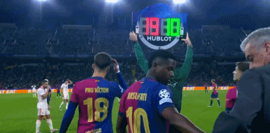 第85分钟,巴萨连换三人,加维、法蒂、保-维克托替补登场