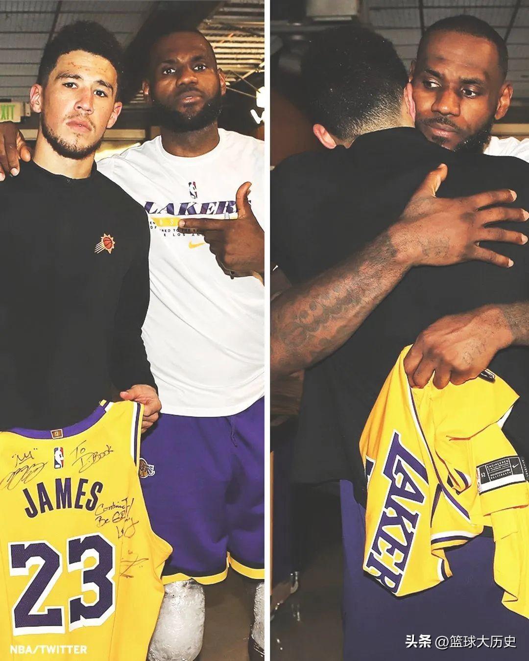 有意思的是,在詹姆斯宣布穿回23号球衣之后,有媒体晒出了他和布克两年前的合照,当时湖人在季后赛首轮被太阳淘汰,詹姆斯把自己的23号球衣签名后送给了布克,美国ClutchPoints打趣道:“布克将不再拥有勒布朗詹姆斯穿过的最后一件23号球衣。”
