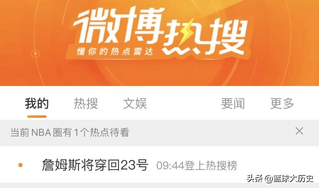 值得一提的是,在詹姆斯宣布换号之后,“詹姆斯将穿回23号” 的词条登上了微博热搜,只能说,詹姆斯的热度是真的大,他的一言一行总是备受关注,换成是一个普通球星很难有这种热度。
