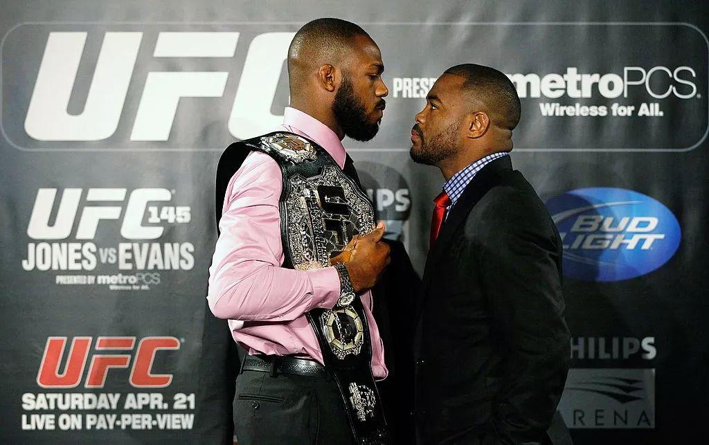 在战胜胡阿,成功问鼎UFC轻重量级冠军后,琼斯在采访中表示有意愿与自己的队友埃文斯进行对决,这让埃文斯感到背叛,从而选择离开他和琼斯共同训练的JW拳馆。也让这场比赛,充满了故事前提的同时,塞满了火药。