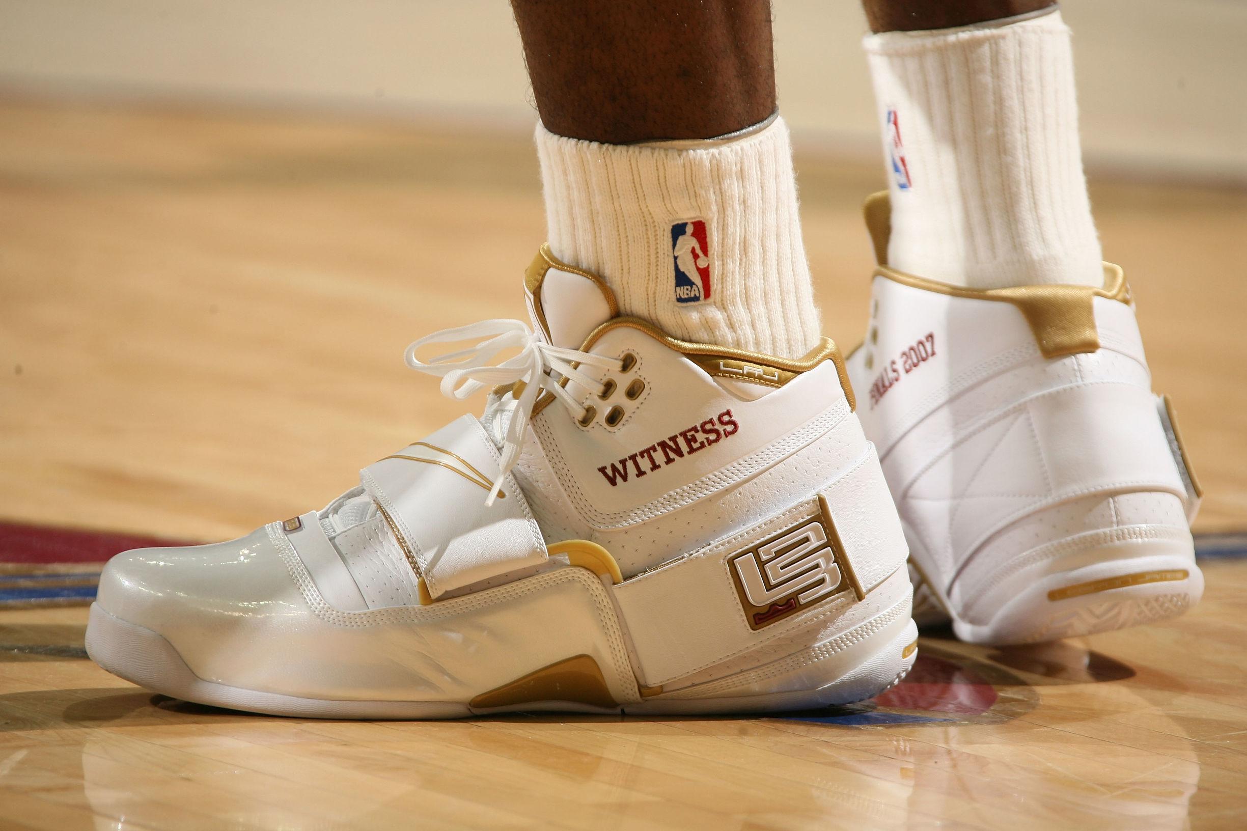 詹姆斯在总决赛上穿上了全新的Soldier系列的首款战靴,总决赛上他也只在主客场各穿一双不同的配色。该系列推出的初衷是为詹姆斯量身定做季后赛专属的鞋款,如今也已经流于形式。不过时至今日Soldier 1依然是最受推崇的詹姆斯战靴之一。