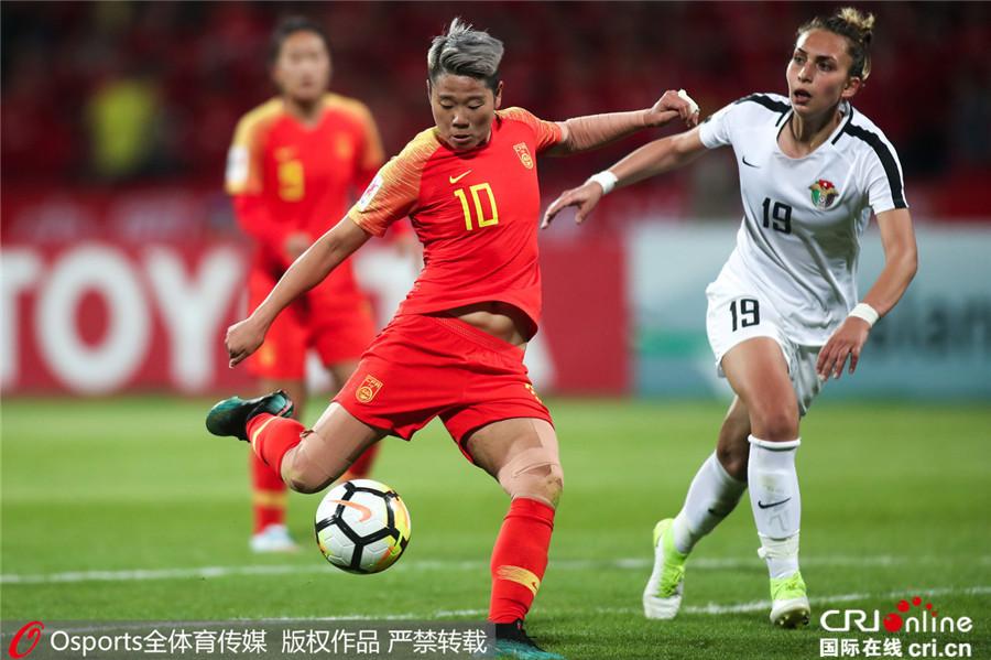 2018年4月13日,2018年女足亚洲杯小组赛:中国女足8:1胜约旦女足,王霜戴帽李影双响助女足大胜晋级。 (Osports全体育传媒 版权作品 严禁转载)