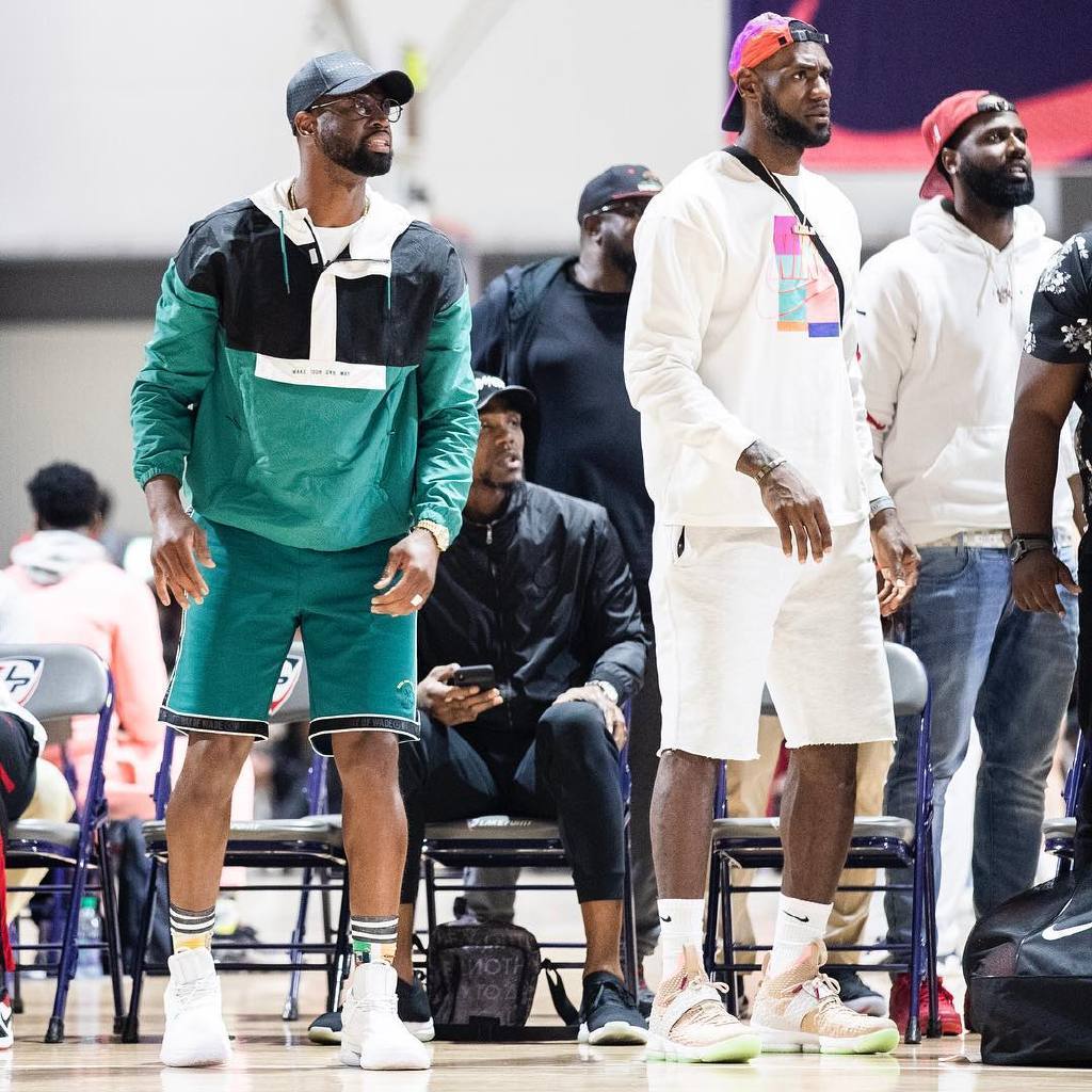 今天詹姆斯同韦德亲临布朗尼(勒布朗儿子)和扎伊尔(韦德儿子)的篮球赛,香蕉船兄弟之一安东尼也有到场,还有一位香蕉兄弟?他正在努力爬往西决的路上。