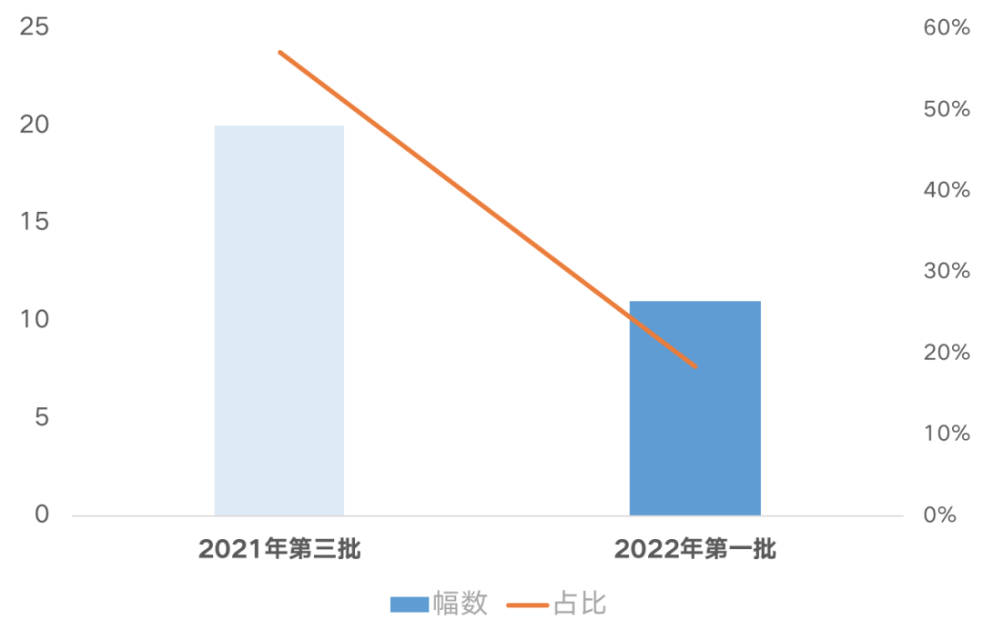 图:杭州22年首次集中土拍出让地块中心城区地块占比与21年第三批对比(按幅数)