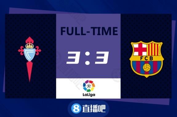 西甲第13轮,巴萨连丢3球3-3遭塞尔塔绝平。上半场法蒂、布斯克茨、德佩破门,下半场阿斯帕斯、诺利托建功,阿斯帕斯最后一分钟绝平。