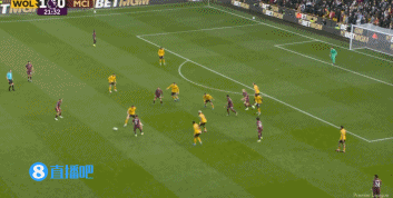 第33分钟,格瓦迪奥尔世界波扳平比分,曼城1-1狼队。↓