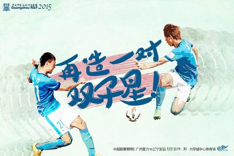 五年前在中超联赛对阵辽足前,富力发出了一张以常飞亚+叶楚贵为主角的海报。
