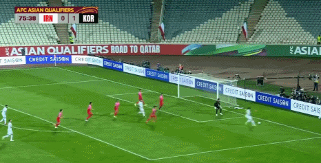 第76分钟,伊朗队快速反击,中前场连续一脚出球,阿兹蒙挑传门前,贾汉巴赫什头球破门扳平比分,伊朗1-1韩国!