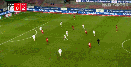 第26分钟,拜仁中场抢断发动反击,萨比策带球推进后过顶球传到右路,穆勒摆渡,托利索左脚爆射破门,拜仁2-0领先科隆!