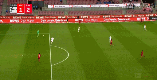 第61分钟,拜仁做出换人调整,萨内换下穆夏拉。第62分钟,基米希中场断球直传,萨内带球推进后直传,莱万反越位成功禁区内推射远角破门,拜仁3-0领先科隆!