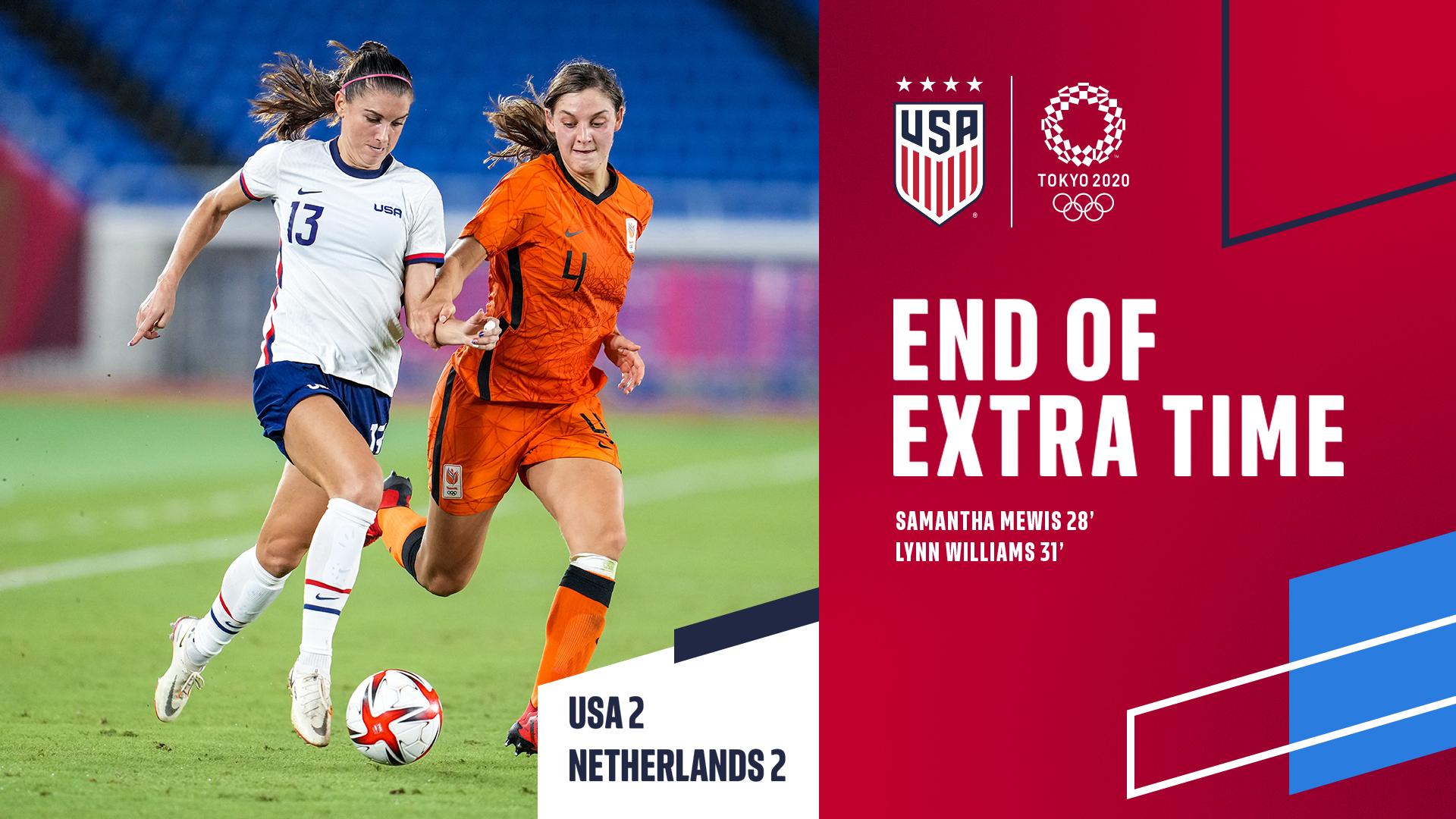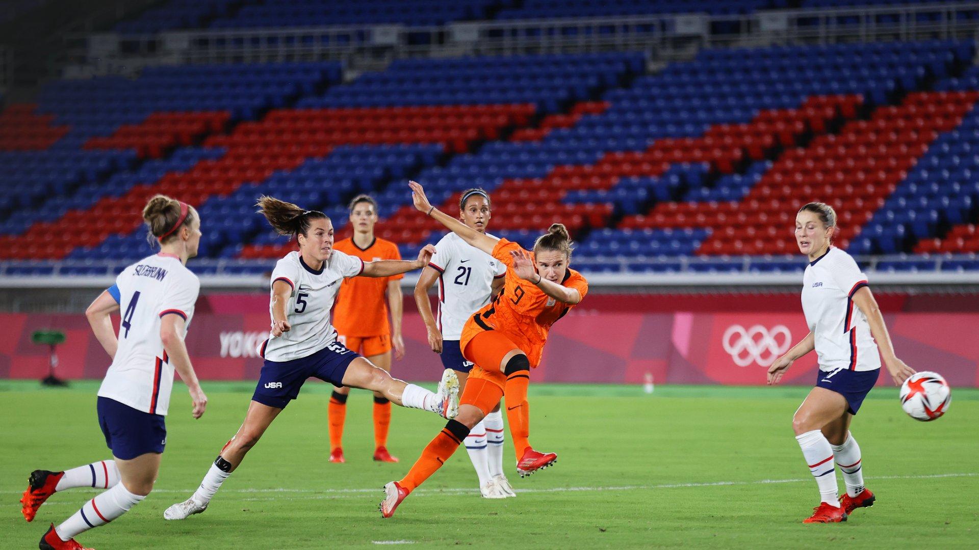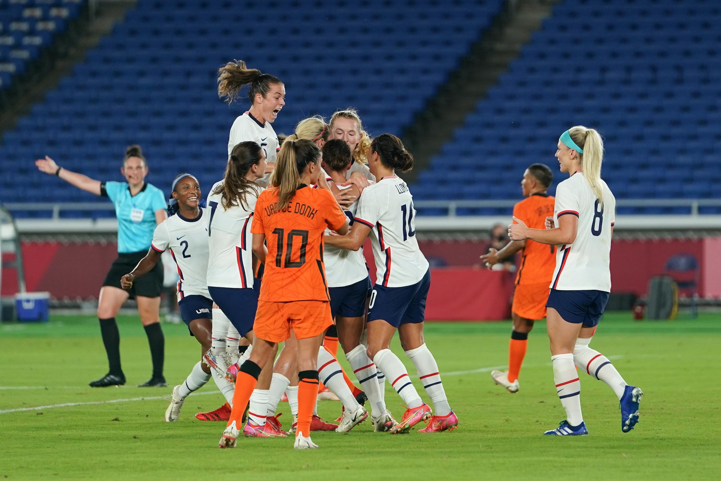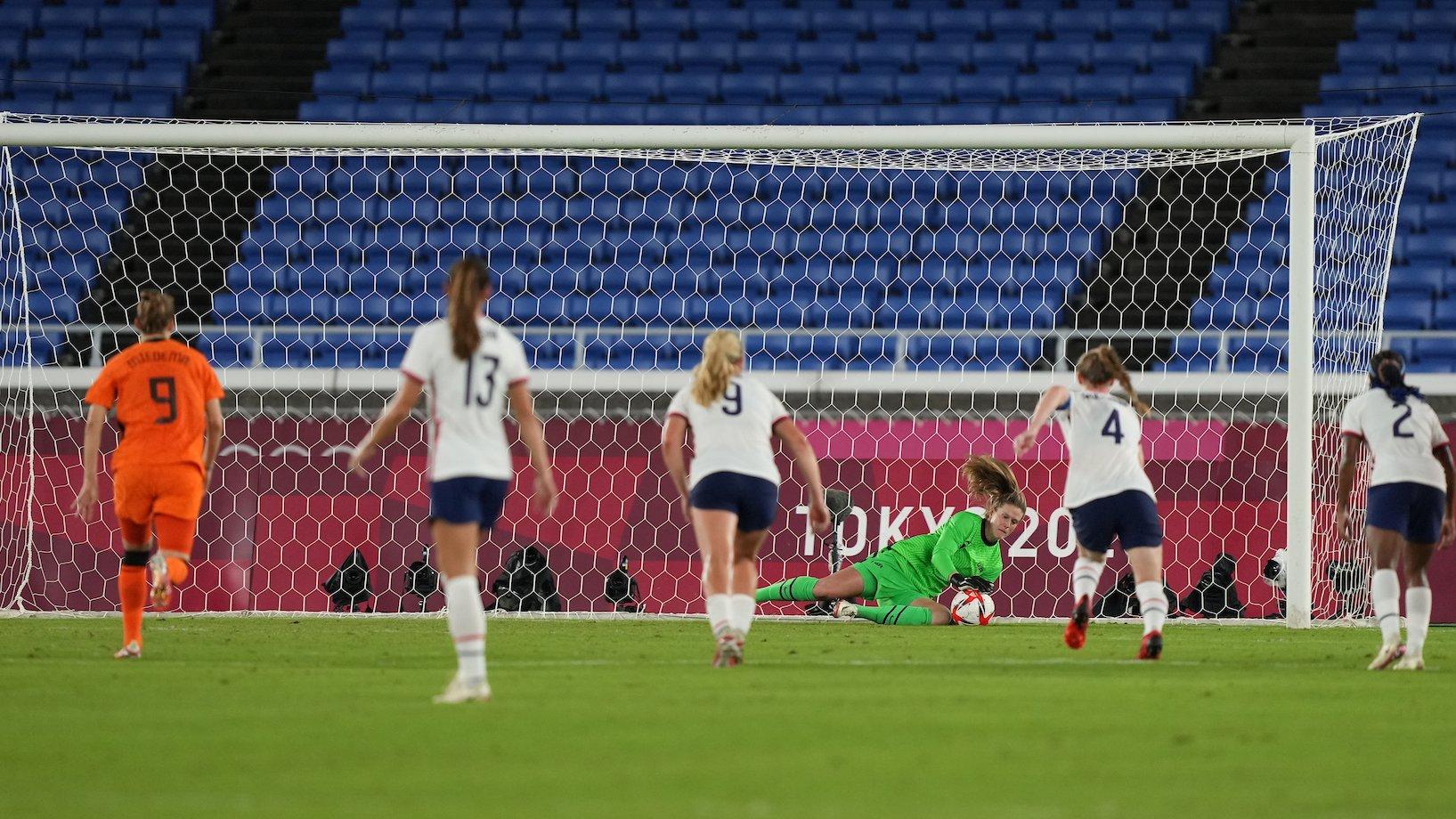 北京时间7月30日19:00,2020东京奥运会女足1/4决赛打响一场焦点战,由世界排名第4的荷兰女足对阵世界排名第1的美国女足。上半场,米德马闪击破门,梅维斯传射建功;下半场,米德马建功。常规时间,两队战至2-2。加时赛,两队均无建树。点球大战,内赫尔封神。最终,美国女足总比分6-4战胜荷兰女足,时隔9年重返奥运会半决赛!