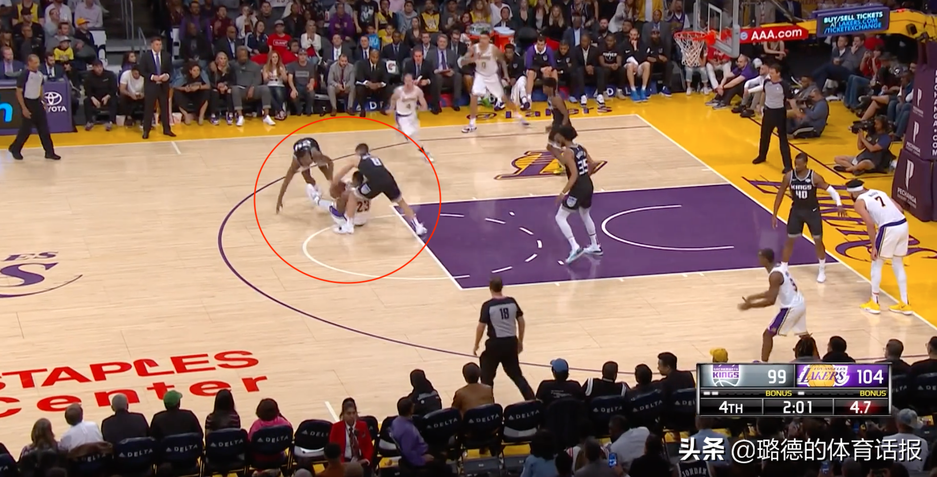 比赛死球进入强制暂停算到湖人头上,只剩一个暂停了