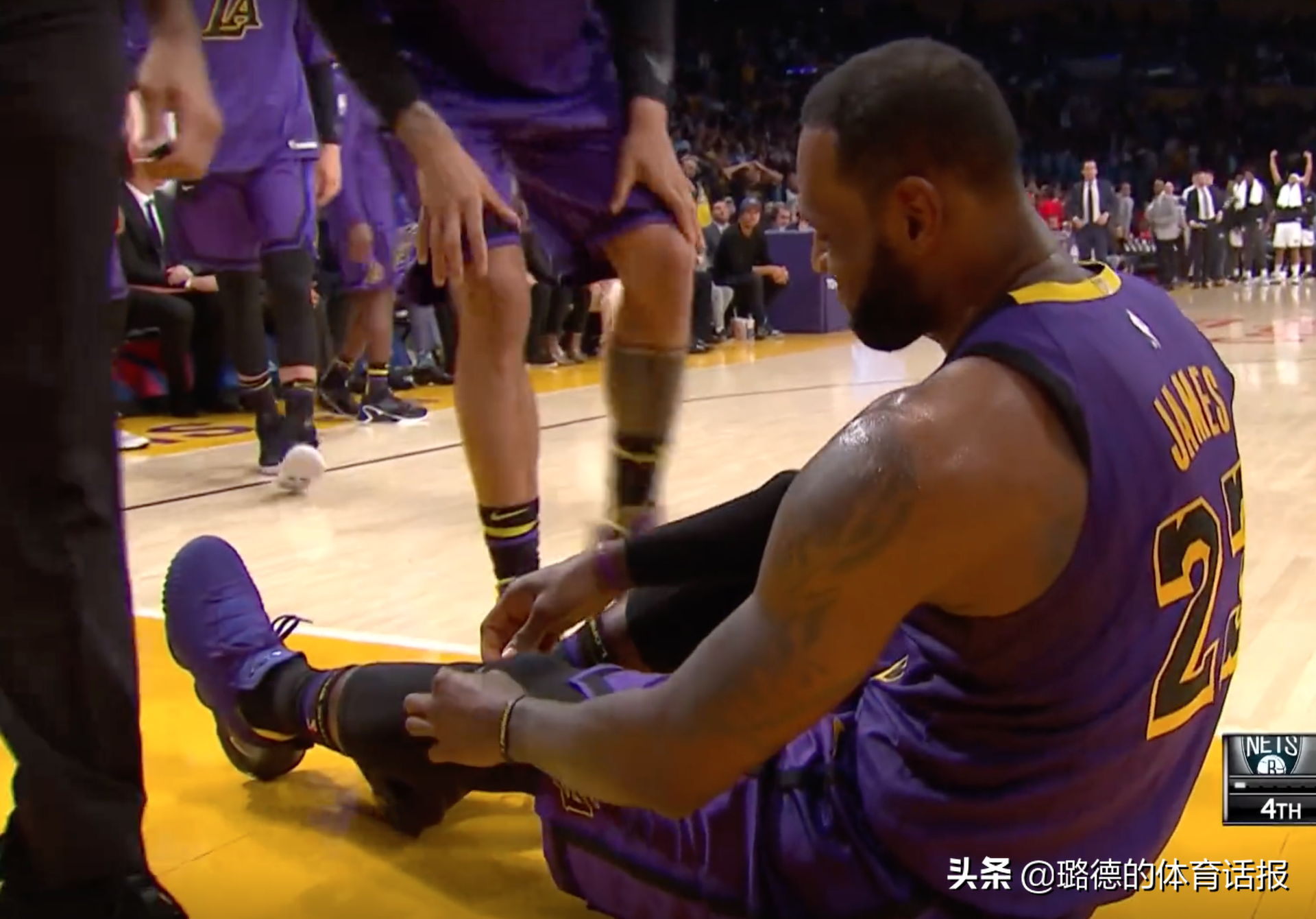 他用身子护着球的样子小编有种说不出的感受,而通过镜头咱们清晰看到詹姆斯手臂受伤了,裤子上也多少沾了血迹。湖人用一个暂停让队医对其伤口做处理,而这场比赛詹姆斯不止滑倒了一次,放其他球员的滑倒小编根本不会写,但回想起两天前湖人输给篮网的比赛里,关键时刻詹姆斯突破滑倒表情痛苦被迫下场,这一幕幕令人唏嘘啊!