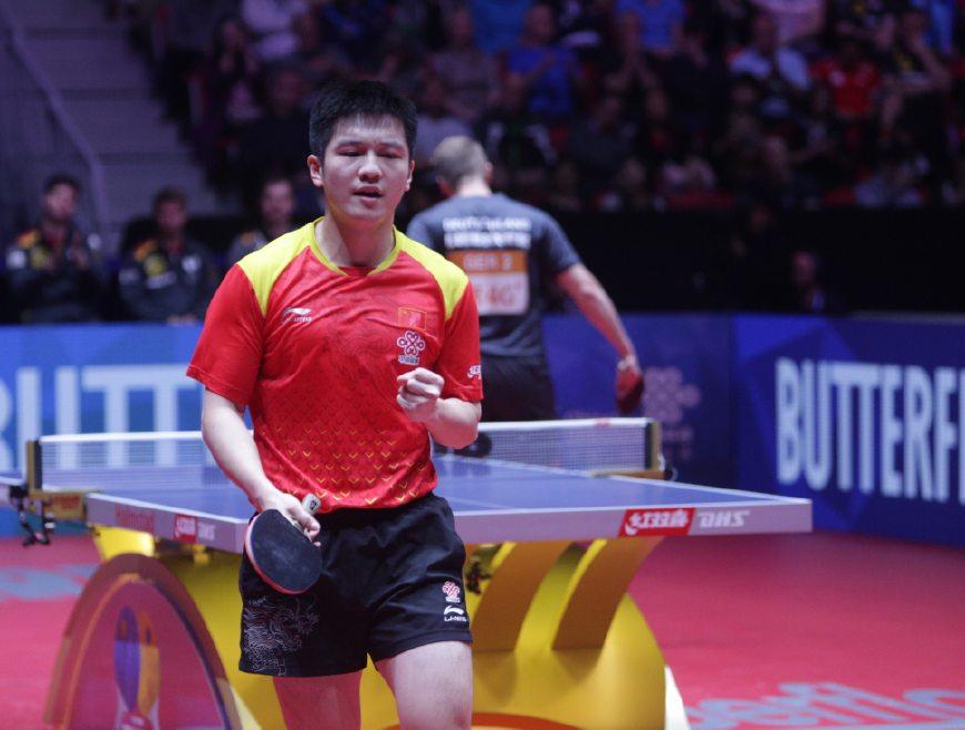 第二盘比赛由樊振东迎战削球手菲卢斯,去年的杜塞尔多夫世乒赛两个人曾有过交锋,当时樊振东4比2胜出,但是前四局中菲卢斯也给樊振东制造了一些困难。本场比赛是两个人第二次交手,第一局菲卢斯开局2:0,樊振东追平比分全面占据主动,11:4,樊振东轻松拿下第一局。第二局,菲卢斯加强了削中反攻,4:4平后樊振东拉开比分以11:5再下一城。第三局,樊振东全面放开,没有再给对手任何机会,以11:4胜出,从而以3比0为中国队将领先局面扩大到2比0。