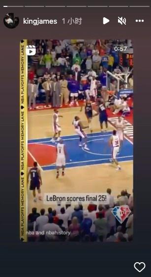 詹姆斯本人也在INS上转发了自己当年最后时刻连得25分的集锦,以及赛场照片。