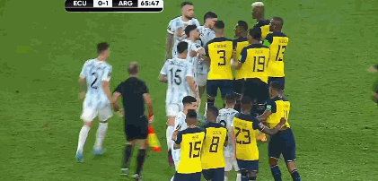 比赛第15分钟,厄瓜多尔左路进攻,造成阿根廷门前一片混乱。