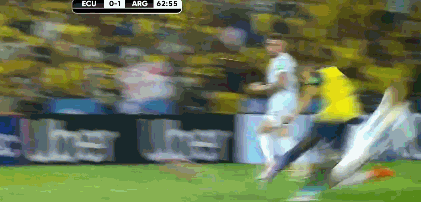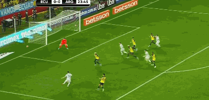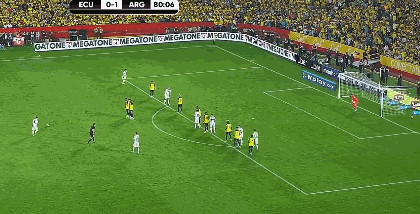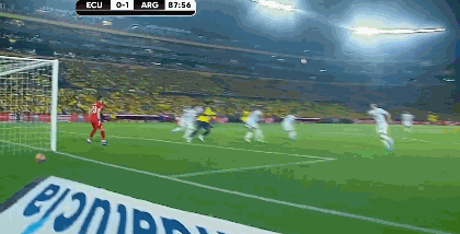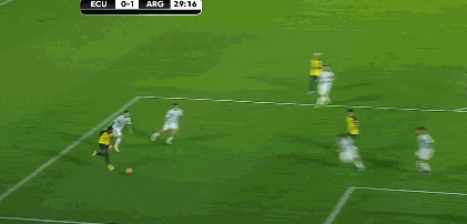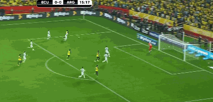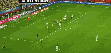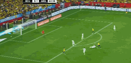 第60分钟,前场偏右定位球伊巴拉斜传,弧顶处阿根廷顶出。第62分钟,外围中路梅西得球遭3人包夹抢断。第64分钟,后场左路厄瓜多尔长传,E-瓦伦西亚前插,阿尔玛尼出击头球破坏。↓