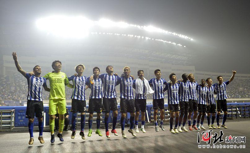 赛后石家庄永昌队全体队员答谢球迷。 记者耿辉摄