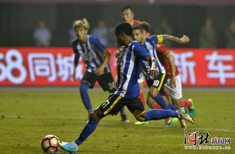石家庄永昌队11号外援阿德里亚诺主罚点球。 记者耿辉摄