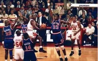 公牛队与尼克斯、热队之间的恩怨世人皆知,1991~1992赛季的东部半决赛被认为是公牛队6次夺冠征程上遇到的最大考验,乔丹在尼克斯队不厌其烦的死缠烂打中几乎失去冷静,双方一直战到第七场,公牛队才涉险过关。