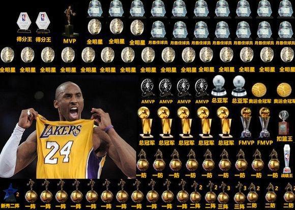 科比和詹姆斯做为联盟的牌面,他们二人职业生涯的荣誉都可谓不胜枚举:科比19年职业生涯里5次拿下总冠军,两夺FMVP,一次常规赛MVP和2次得分王,11次入选一阵、9次入选最佳防守阵容一阵,生涯18次入选全明星。