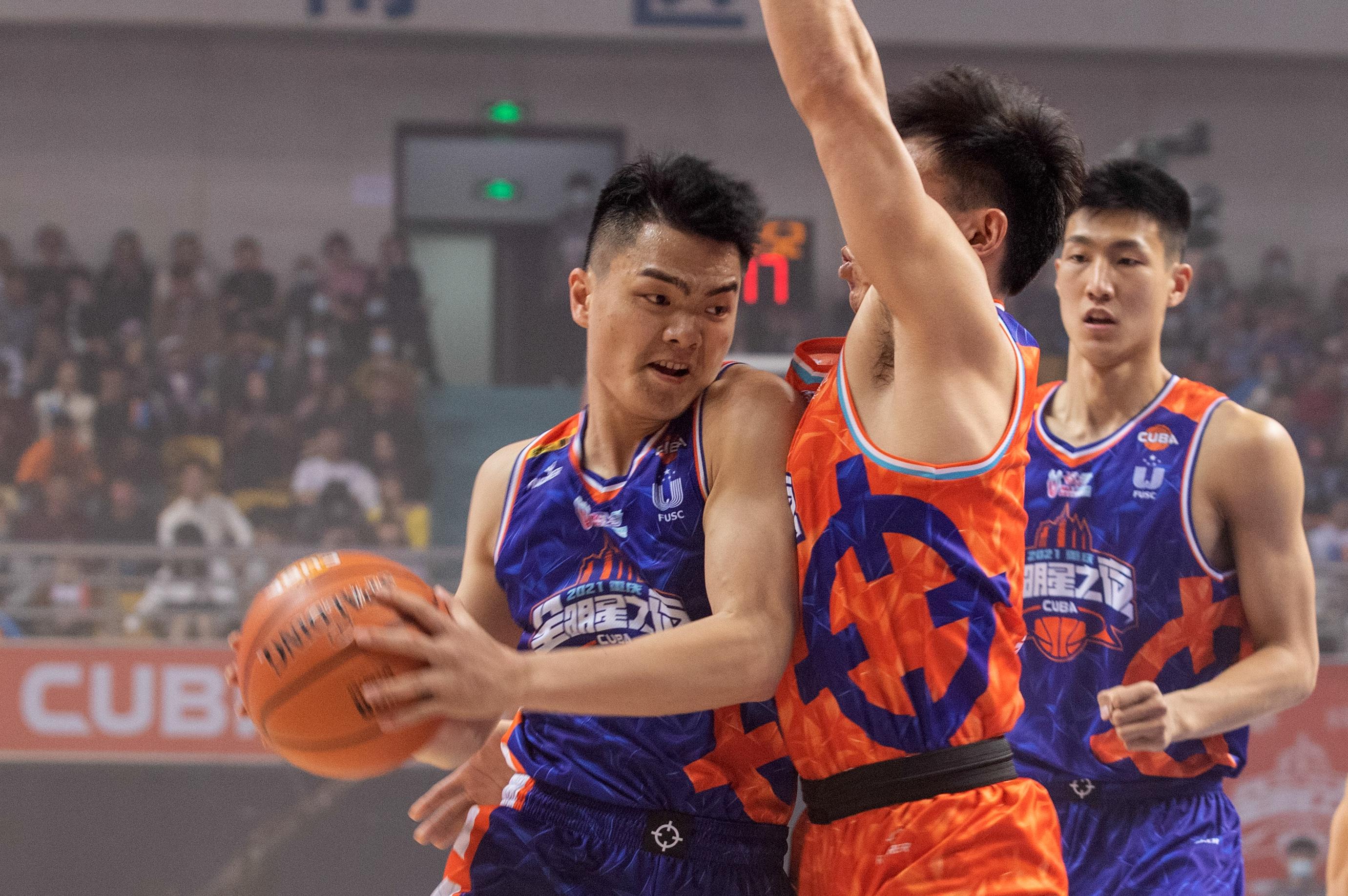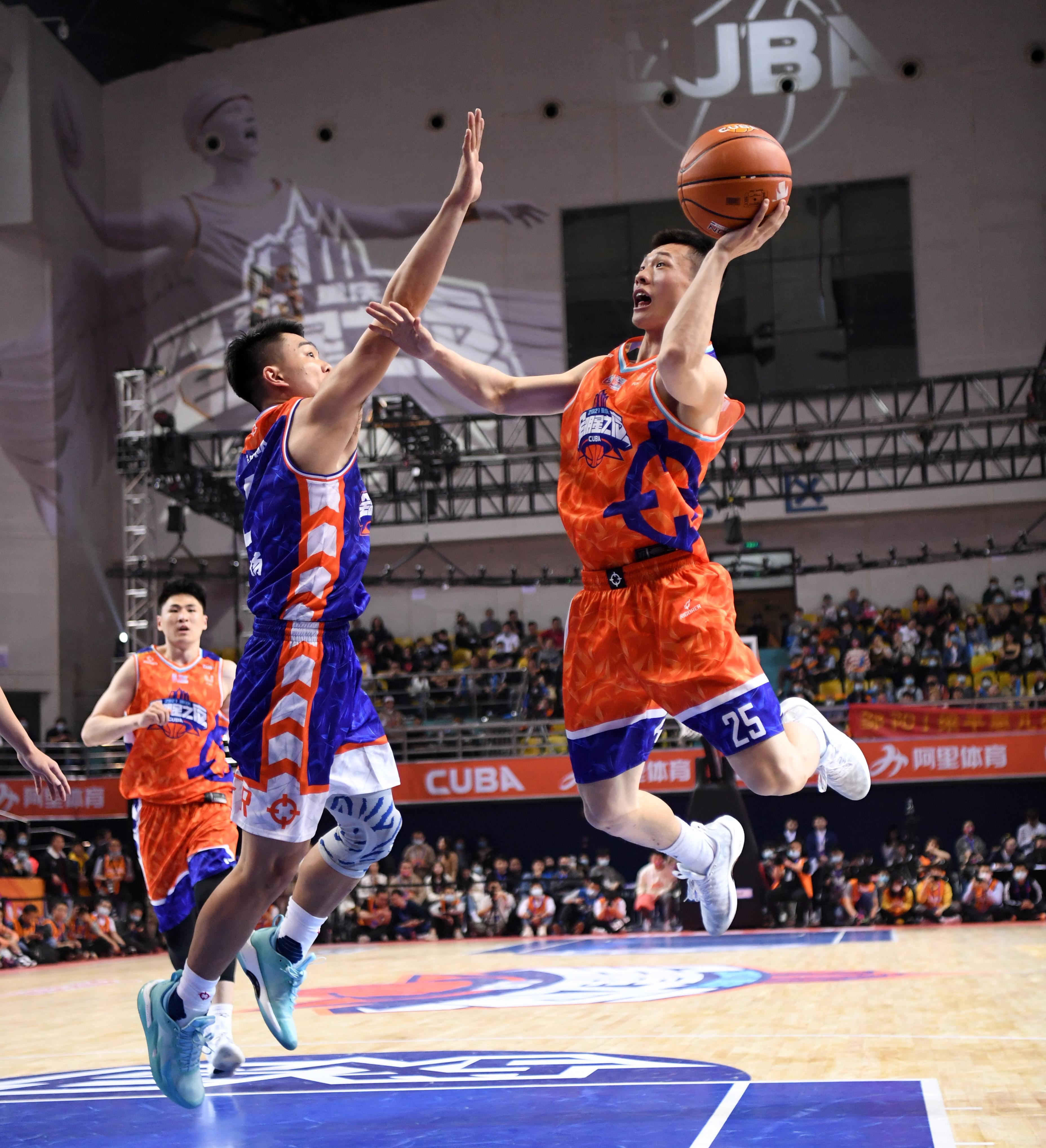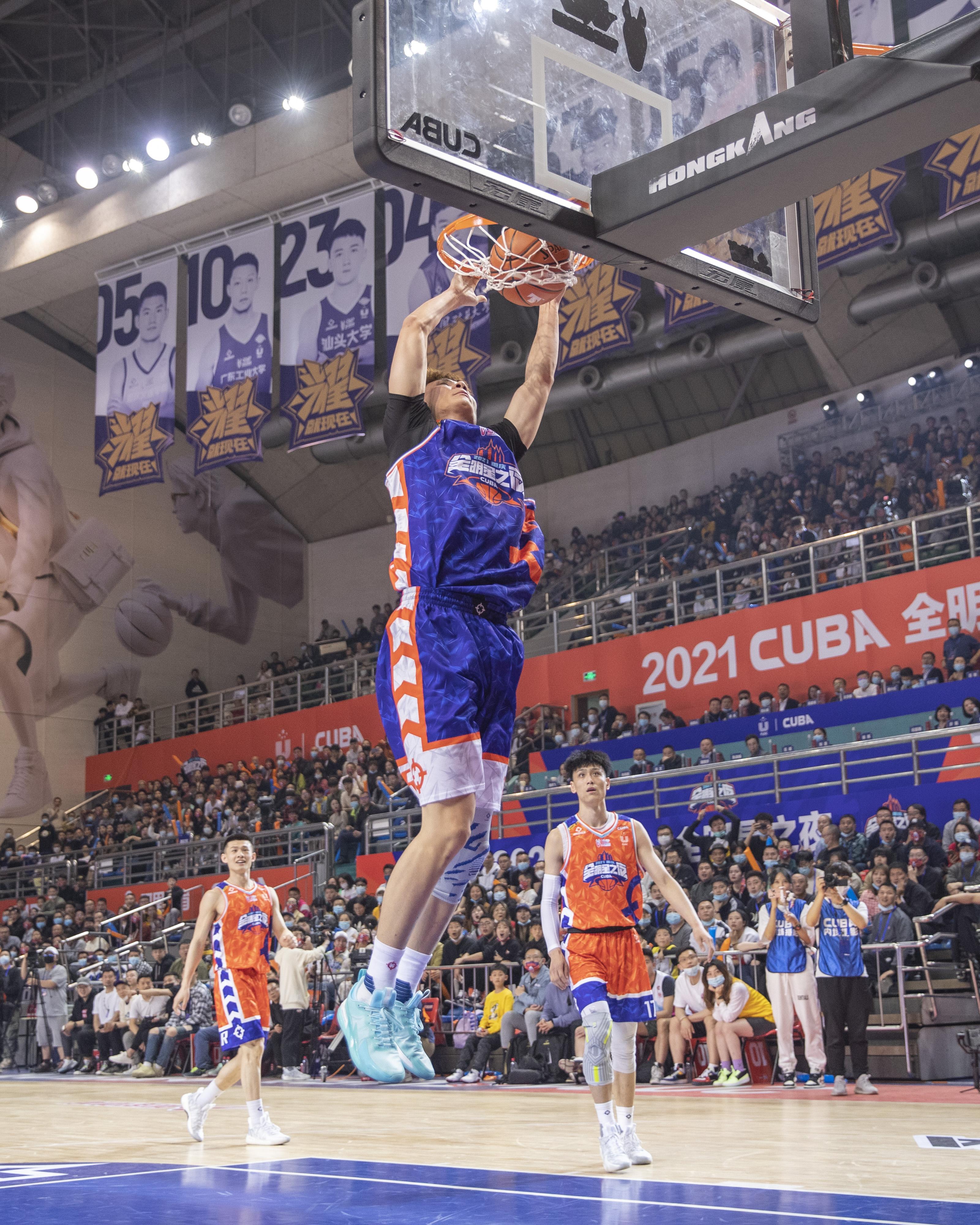当日,在重庆举行的2021中国大学生篮球联赛(CUBA)全明星赛中,巅峰队对阵精英队。