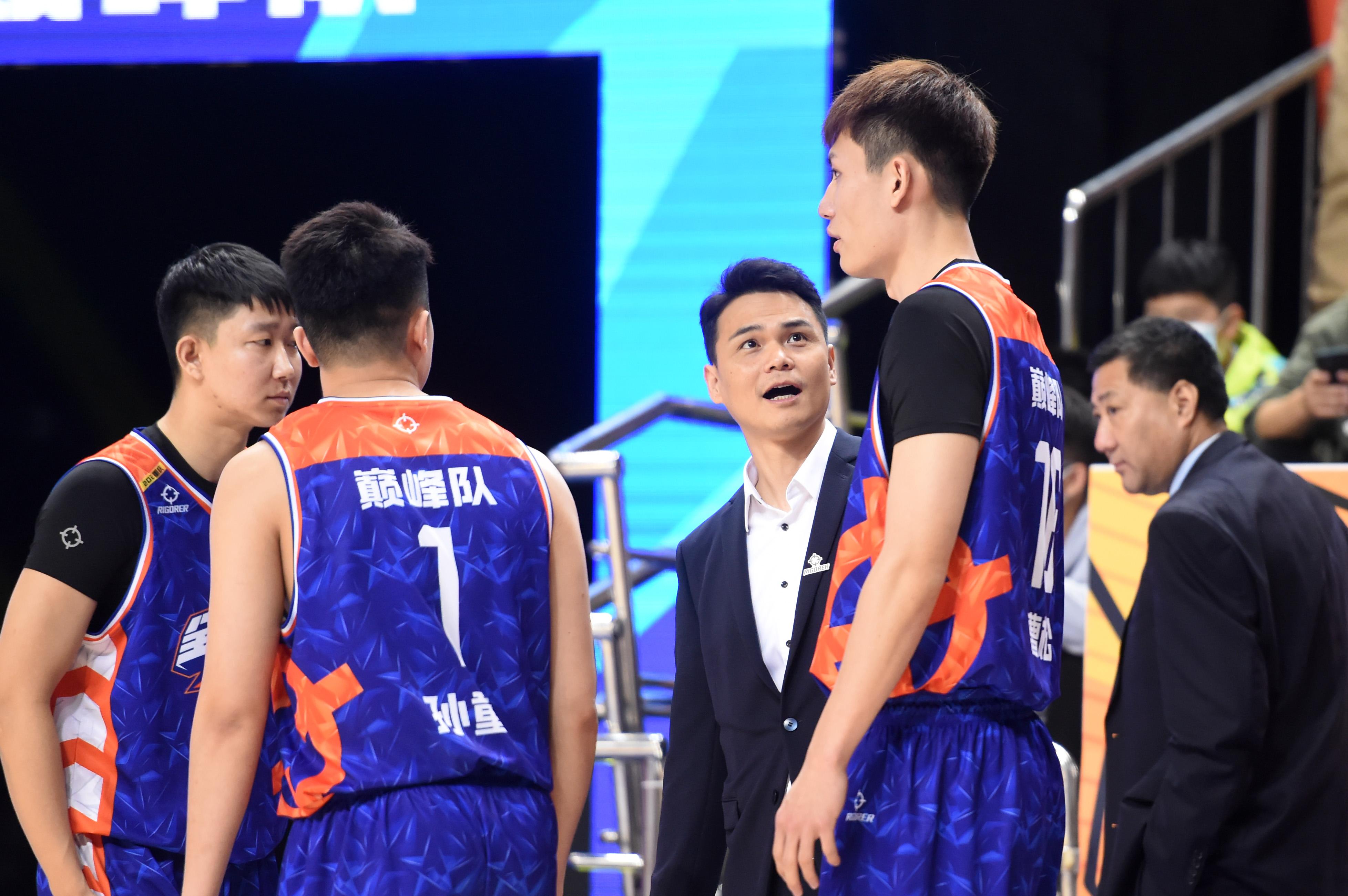 3月13日,巅峰队教练任峰(中)在暂停时间布置战术。 新华社记者 唐奕 摄