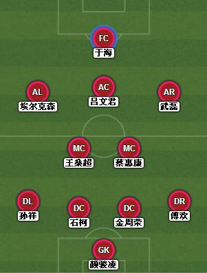 面对这种情况,埃里克森不得不改变此前熟悉的用人套路,首先他将于海提到前场,并将王燊超放到后腰位置,企图利用王燊超的防守能力加强中场防守,这个做法是非常合理的。不过埃里克森在前场四人的安排上却令人始终捉摸不透,他一下将于海提到单箭头,而把埃尔克森拉到边路,同时前腰让吕文君担任,武磊则在右路,这样的安排确实意想不到。因为大家都知道于海在打后腰前就是左边前卫,埃尔克森在中路发挥更好,同样在孔卡缺阵的情况下武磊是前腰的第二人选,吕文君则更习惯在边路活动,然而埃里克森把位置全部打乱,谁也不知道他在想什么。