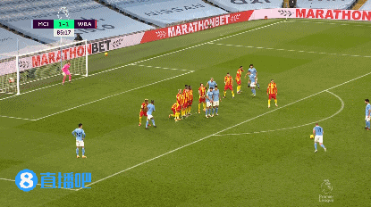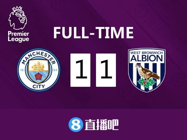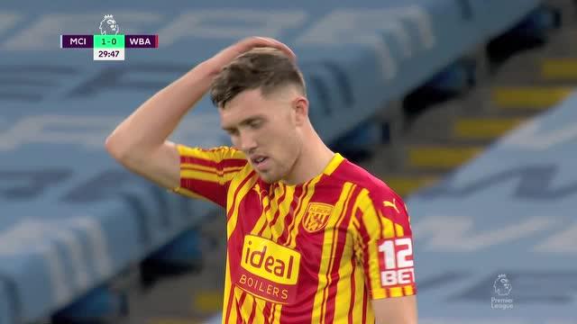 下半场比赛补时2分钟,全场比赛结束,曼城客场5-0大胜西布朗,联赛迎来7连胜登顶英超积分榜。