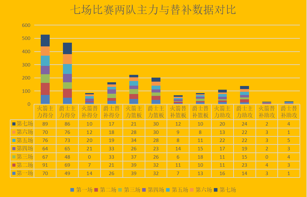 季后赛七场主力替补数据对比
