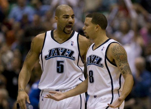 爵士的打法还是以斯隆经典的挡拆战术为主,德隆-威廉姆斯和卡洛斯-布泽尔这一对新的犹他双煞,通过挡拆创造进攻机会,布泽尔通过给德隆挡拆,利用精准的中距离以及顺下能力可以得到很多出手机会 ,相反德隆利用布泽尔的挡拆牵制,可以中投可以突破,可以突分给弧顶的基里连科和奥库释放冷箭。