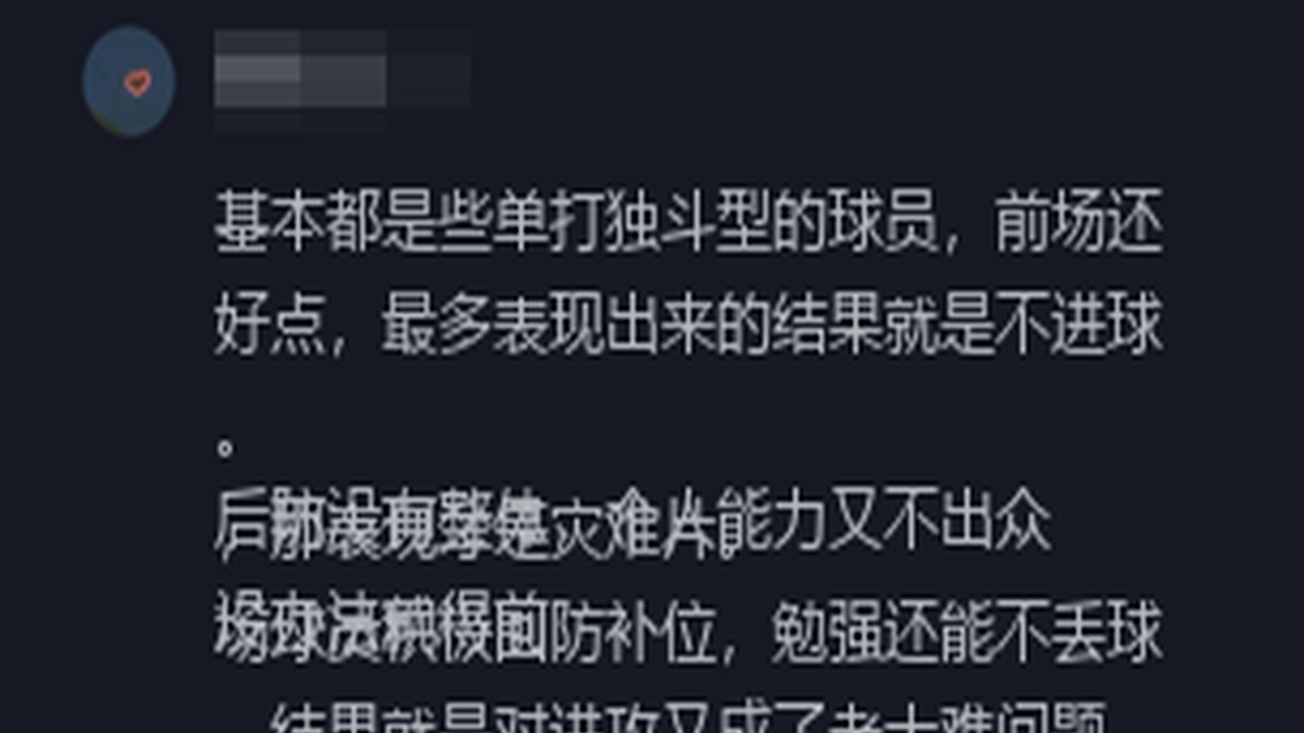 网友三表示,前场球员在积极回防补位方面做得不错,这才勉强保证了球队不丢球,但同时也暴露出球队在进攻端存在的问题。