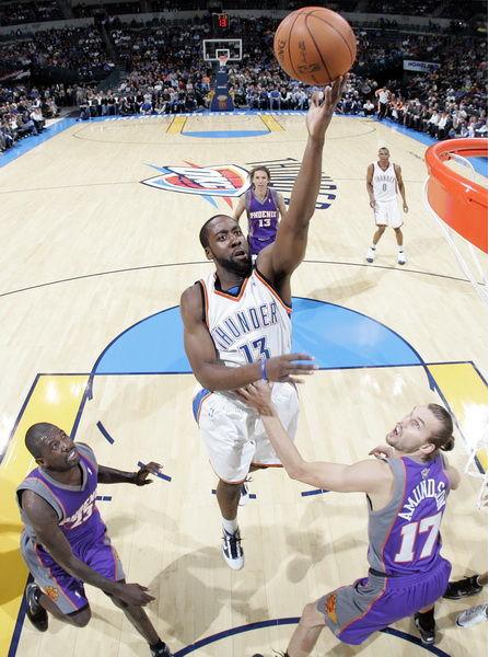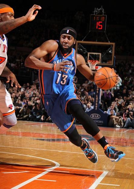 哈登在雷霆征战了3个赛季,期间一直穿着Nike的球鞋出战,基本上是各种团队款球鞋轮着穿,并未有固定的战靴,其中包括Nike Hyperize,Nike Hyperfuse,Nike Hyperdunk,科比签名鞋,杜兰特签名鞋等。
